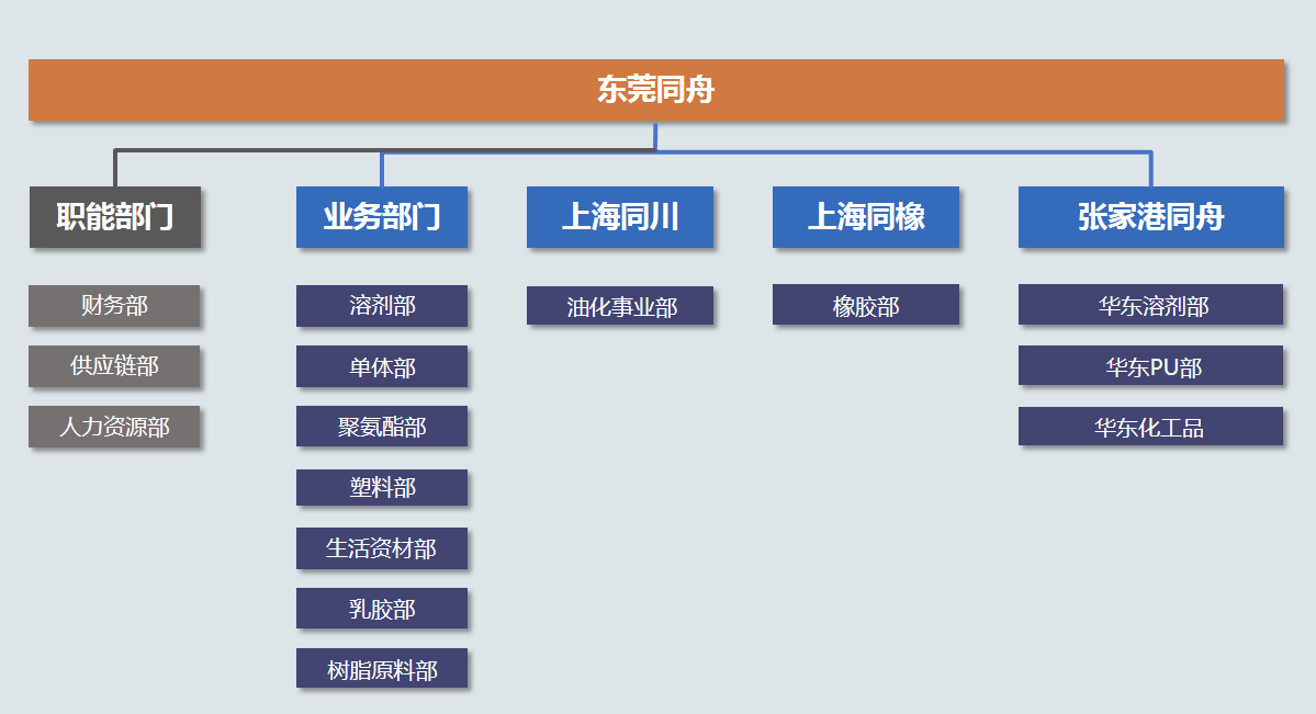 同舟專注于化工品分銷業務,核心經營產品逾千種,廣泛應用于油漆涂料、化學合成、橡膠加工、塑料加工、日化等行業,年營業收入超過70億人民幣,年銷售數量超過90萬噸,在廣州、上海、張家港、青島、泉州、香港、泰國等地設有辦事機構,銷售區域覆蓋全中國及東南亞國家,是化學品分銷行業中的佼佼者。