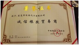 2015年11月6日,中國橡膠工業協會授予同舟化工“誠信橡膠貿易商”榮譽稱號。