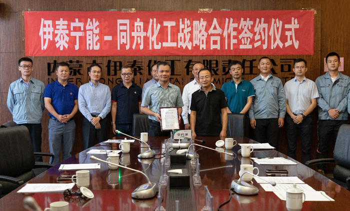 東莞市同舟化工有限公司總經理黎慶愷,副總經理成建平、顧俊等人出席簽約儀式,伊泰寧能向同舟化工頒發